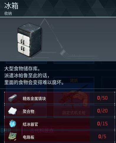 2、然后我们需要准备制作素材50个精炼金属铸块、20个聚合物、15个结冰器官、5个电路板。
