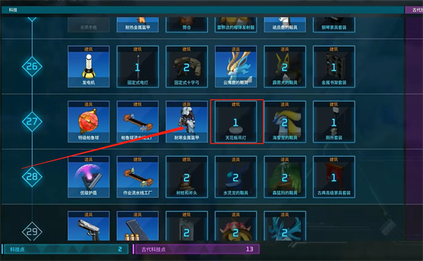 1、首先我们需要提升等级到27级,通过解锁科技就能获得天花板吊灯。