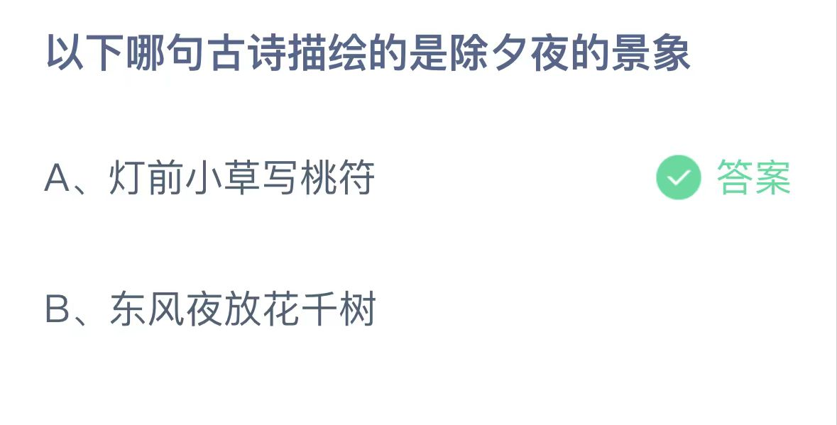 正确答案:灯前小草写桃符
