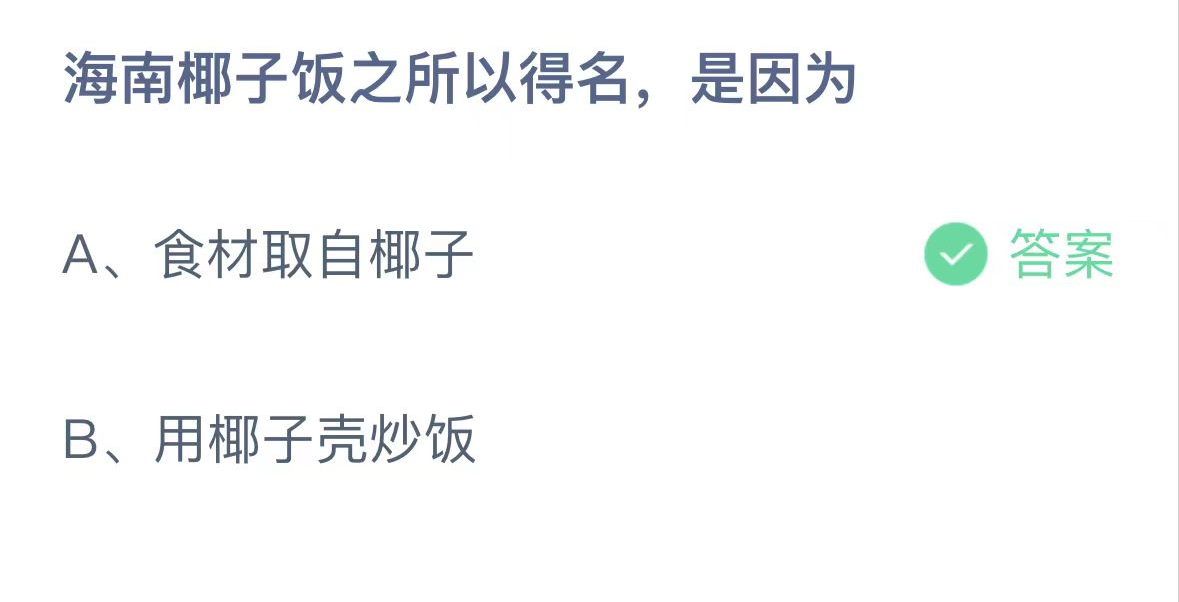 正确答案:食材取自椰子