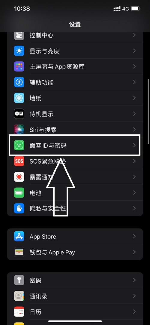 2、选择面容ID与密码,在这一步,就需要输入我们的手机密码。