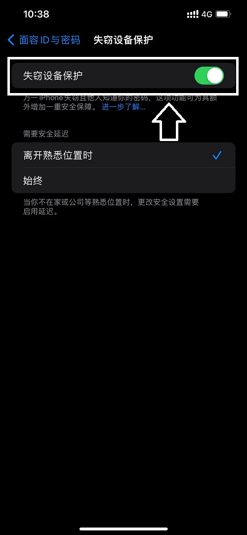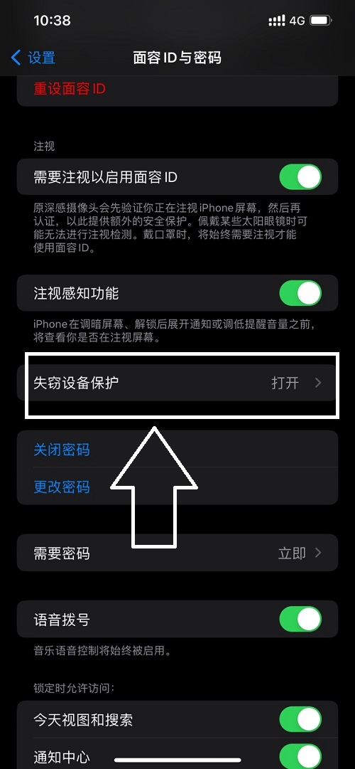 流程概览:设置-面容ID与密码-失窃设备保护(需要输入密码)-点击关闭