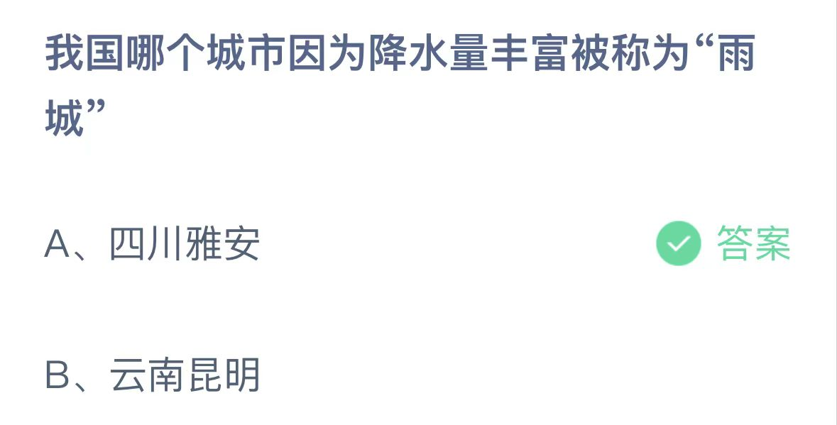 正确答案:四川雅安