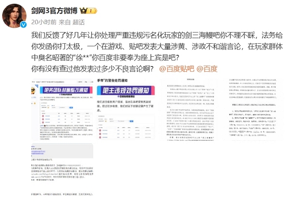 不久前剑网三微博正面喊话百度贴吧不回应相关反馈,不封禁违规人员,言辞铿锵有力,正义凛然。