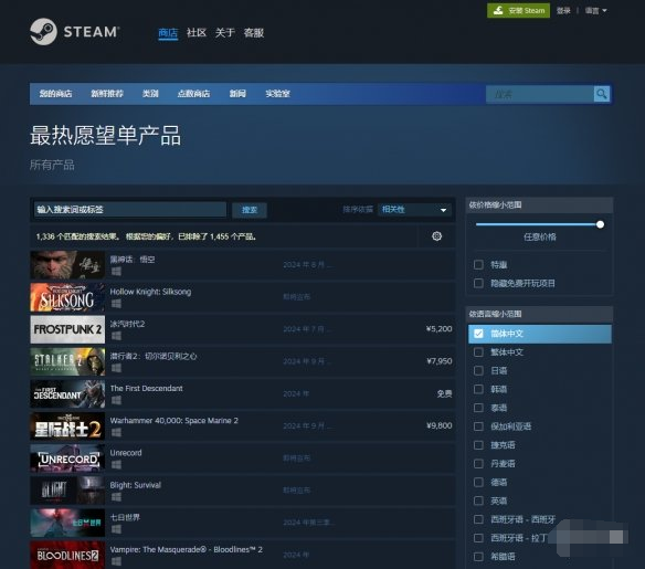 最近,Steam愿望单排名频繁变动。《庄园领主》曾位居榜首长达数月之久,《潜行者2》 和《空洞骑士:丝之歌》等作品紧随其后。《黑神话:悟空》也一直稳居前五的位置。