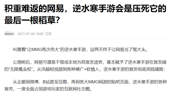 为了抵御《逆水寒》手游的汹汹攻势,MMO厂商们更是施展浑身解数,将黑公关、碰瓷营销等套路用了个遍。