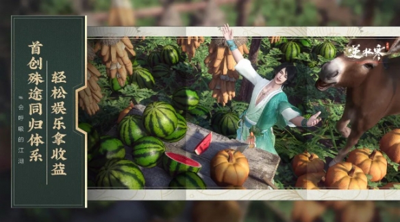 除此之外,《逆水寒》手游也为武侠MMO市场树立了一个新的标准。在商业化方面,主打一个“不肝不氪”,坚持不卖任何数值,游戏中所有装备、道具都由玩法直接产出,最大程度地保证平民玩家也能获得良好的体验。