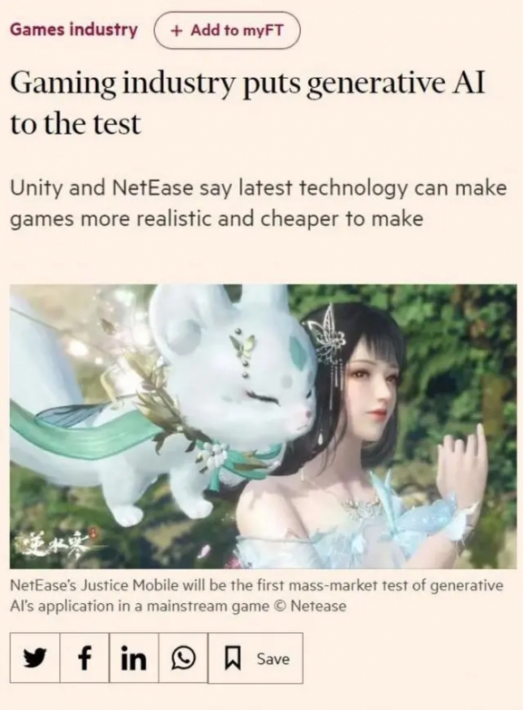 就连英国《金融时报》也发表专栏文章,对《逆水寒》手游的AI技术进行了报道,赞扬了游戏在AI领域的创新尝试。