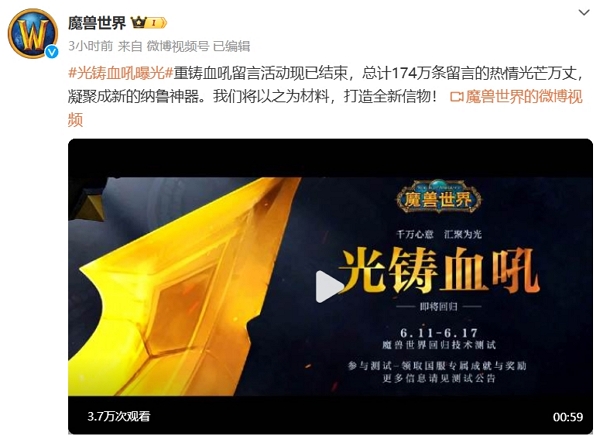 不久前魔兽世界宣布了有关于血吼重铸的最新消息。目前相关收集血吼重铸的留言活动已经正式结束。本次已收集大约174w相关留言。