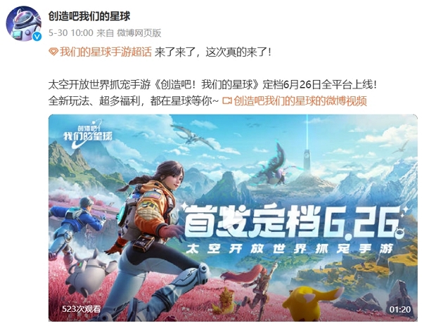 创造吧我们的星球在不久前正式表明了有关于自己的公测日期。创造吧我们的星球将在6月26日正式全平台公测。