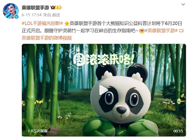 英雄联盟手游在不久前正式表示将开启大熊猫公益项目活动,相关活动将在6月20日开启。