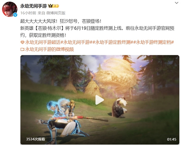 永劫无间手游全新英雄将在6月19日随定胜测试上线。永劫无间手游在不久前正式公布了有关定胜终测的相关信息,本次定胜测试将增加全新英雄特木尔,该英雄将随定胜测试同步上线。