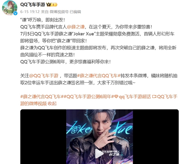 qq飞车手游公布代言人 薛之谦邀你一起飞车。不久前qq飞车手游公布了有关代言人。代言人选为薛之谦。qq飞车手游即将进行六周年庆,由薛之谦为qq飞车手游创作的主题歌曲即将发布。