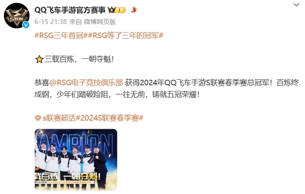 不久前qq飞车手游2024春季赛正式结束。rsg战队过关斩将,获得了本次比赛冠军。