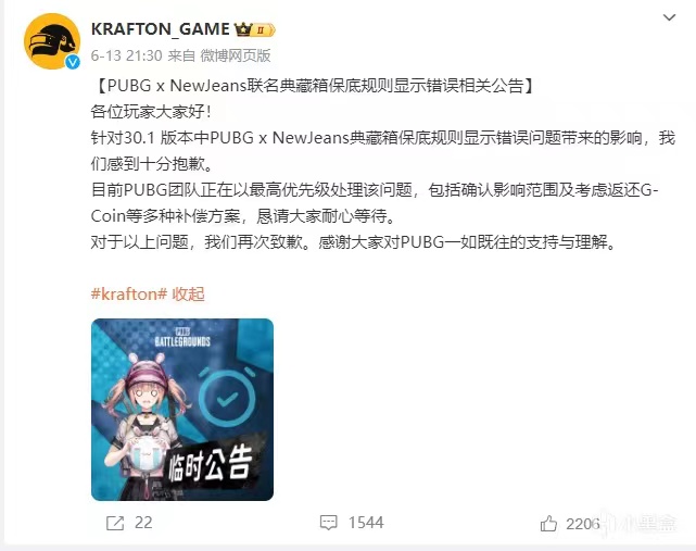 方案B:在补偿适用时间范围内购买过的玩家,从“开启5个典藏箱以上,每个箱子返还600G-COIN”变为“购买Newjeans升阶包和商城物资箱包相关的所有G-COIN消费全部退还,且开出的道具不回收”,相当于6月13日晚上21:30分之前开出来的玩家基本等于白嫖,可以等待后续兰博基尼联名上线再消费。