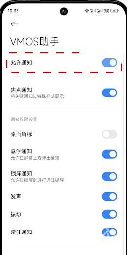 9、下滑通知中心,在里面找到vmos助手的通知选项,在这里点击提示,输入配对码。