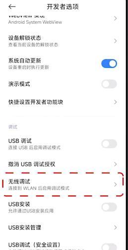 6、软件会自动跳转到开发者模式界面,在列表中选择无线调试。