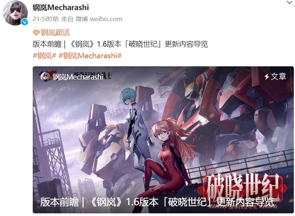 钢岚宣布与eva联动 7月2日联动内容上线。不久前钢岚宣布与eva(新世纪福音战士)进行联动,联动活动开启后将会上架相关联动角色与联动活动。