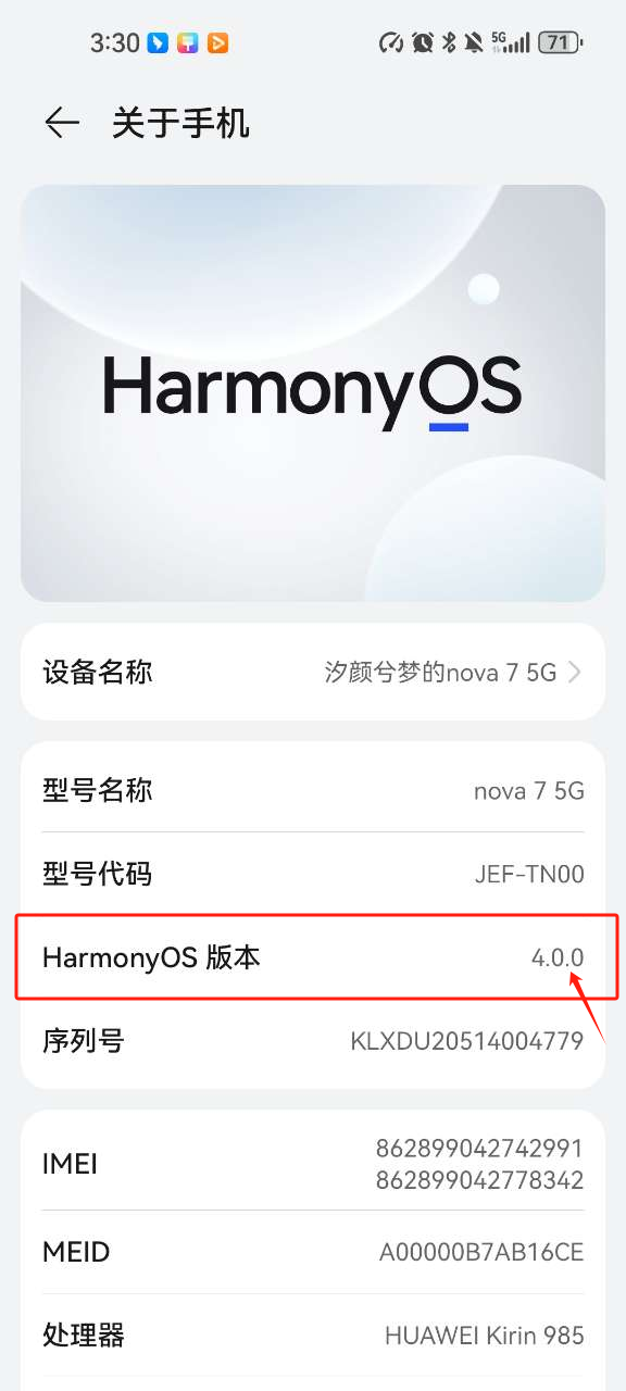 这个页面上就出现了手机设备的鸿蒙os版本号