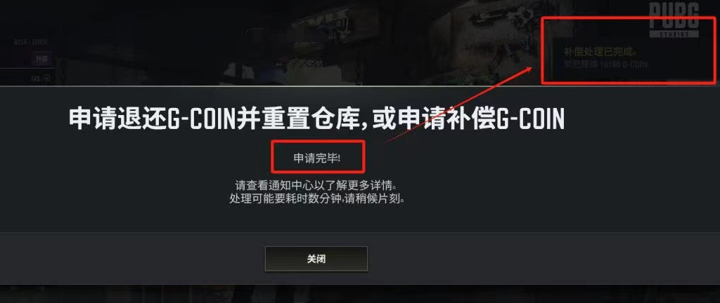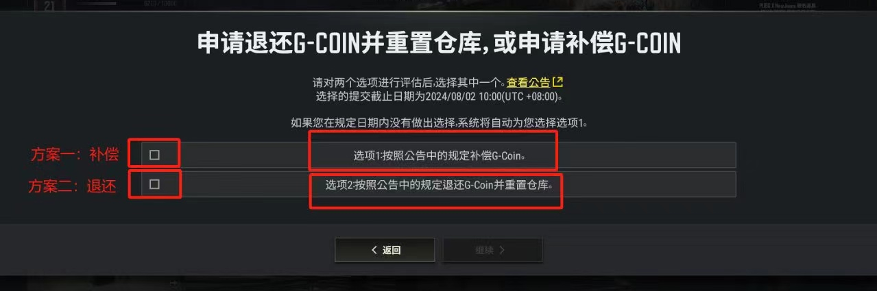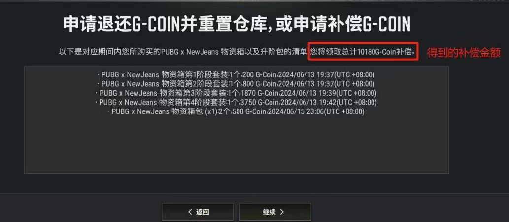 第二种:选择回档,退回各种宝箱、物品、皮肤和g-coin等