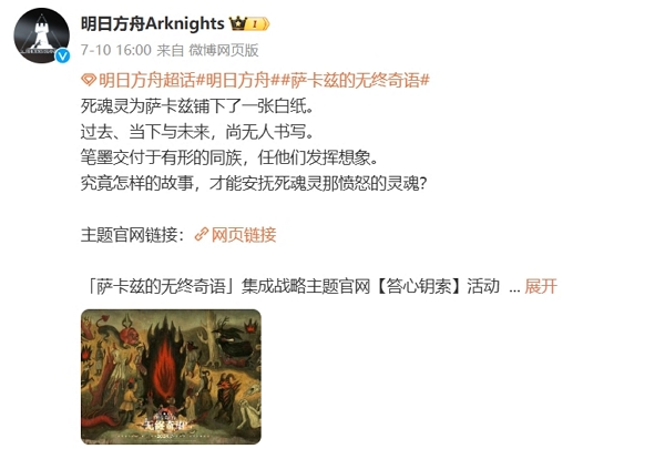 明日方舟在不久前正式宣布,将上线全新肉鸽主题萨卡兹的无终奇语。该主题将在7月16日正式上线。