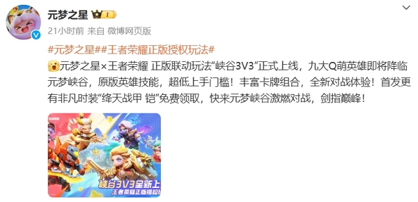 元梦之星在不久前正式宣布,将上线与王者荣耀联动的相关玩法,该玩法为王者荣耀正版授权,玩法将在7月19日正式上线。