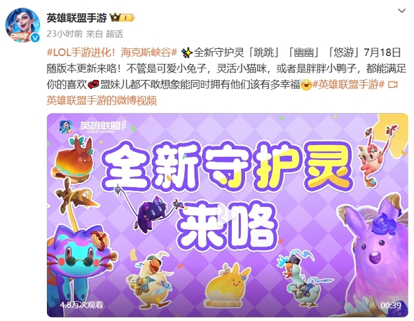 英雄联盟手游在不久前表示将在新版本上线全新守护灵,本次守护灵一共会有三只。分别名为跳跳、幽幽、悠游。