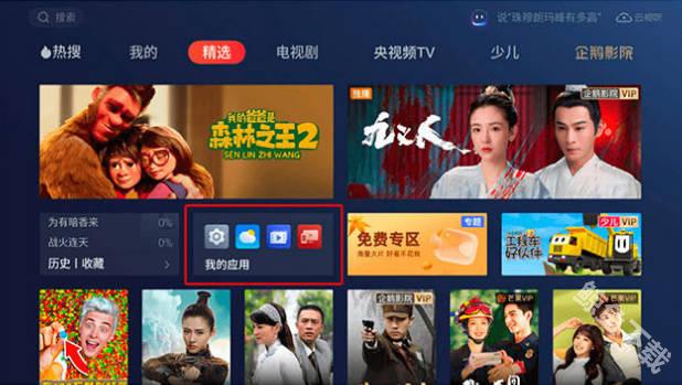 2、打开电视,首页中找到【精选】的栏目,并打开【我的应用】