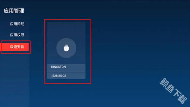4、点击【应用管理】,找到应用管理下方的【极速安装】,选择你的U盘