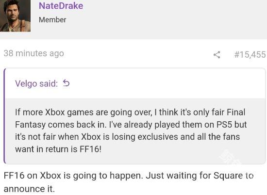 知名舅舅党Natedrake近日在论坛上表示最终幻想16会发售xbox版本,现在只需要等待se官宣即可。除了论坛的爆料,目前也有玩家在英伟达显卡驱动程序中发现了最终幻想16最新的配置文件,那么就说明pc端也快到来了。就在过几天的2024科隆展上,大概率会宣布在pc和xbox平台上发布的相关信息。