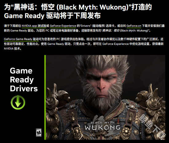 英伟达官方正式宣布,为黑神话悟空打造的Game Ready驱动将在下周进行发布,玩家们可以访问英伟达官方来下载GeForce最新的显卡驱动,适用于pc端和笔记本电脑端,获得最新的NVIDIA技术,更好的迎接即将发布的黑神话悟空。