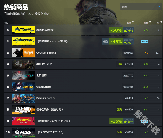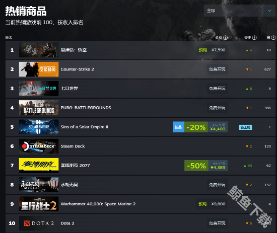 黑神话悟空同时也在stram商店的销量目前也在全球性的稳定增长,截止发稿前在比较大的国家当中都迎来了大幅度的增长。