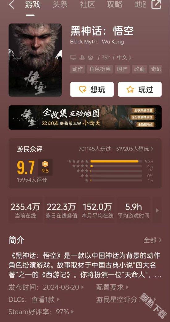 黑神话悟空在2天前正式上线,经过2天的过程,不少玩家已经速通,但也有部分玩家买了还没玩(比如我),steam平台上的人数也在实时增长,就在昨天steam峰值在线玩家人数已经突破200万人了,已经成功超越了年初的幻兽帕鲁,稳坐steam在线人数历史的第二名,目前仅此免费游戏-绝地求生。