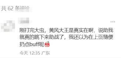 最近有玩家在玩黑神话悟空游戏中发现,黄风大圣是真的实在,说完就跳下来助战了,本来还以为在上面随便扔点buff加成。玩家称:“他下来之后我就旁边看戏了 后面全是他打的”、“说句真的,我一直在旁边看着他干掉大虫”