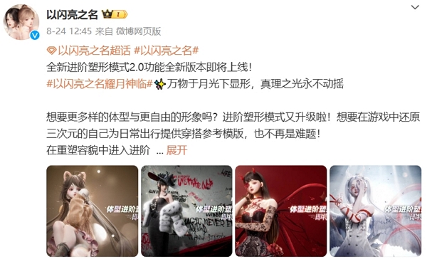 以闪亮之名在不久前正式宣布进阶塑性2.0版本即将正式上线,本次功能板块将全新进阶开放,获得更高的自由度。