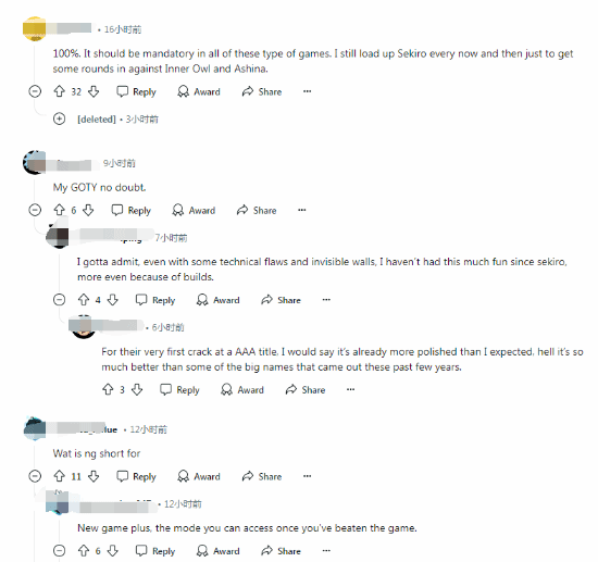在这条帖子的下方评论区,有不少的玩家也赞同了这一观念,有其他玩家指出:“在这魂类游戏当中,boss挑战是必须要有的,不然玩家会时不时打开只狼这款游戏,只是为了和他喜欢的boss打上几个回合。”