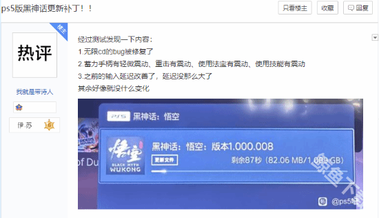 目前黑神话悟空ps5版的更新补丁已经完成了推送,更新的版本号为1.0.8.14848,和pc版相同,更新大小为1.089GB。根据ps5端玩家的测试当中,在全新的版本模式下,之前可以卡无限法术、无限体力的bug目前已经被修复,还改善了输入延迟、震动体验提升等。