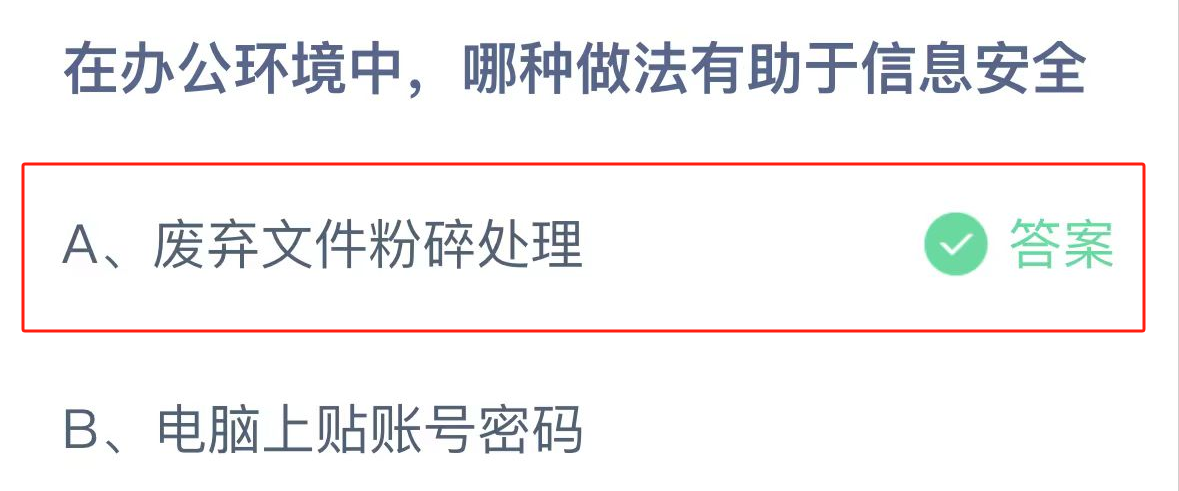 正确答案:废弃文件粉碎处理