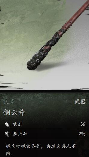 黑神话悟空铜云棒怎么样?这是一款通过购买豪华版之后可以获得的武器装备,在游戏初期就可以获得,今天为玩家们带来黑神话悟空铜云棒的具体参数资料,帮助玩家来这里找到更多关于这个方面的信息。