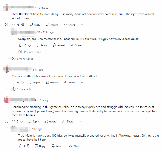 最近有外网的玩家发声,将黑神话悟空中的二郎神角色比作艾尔登法环中的女武神,玩家认为两个角色都在各自的游戏中有着同样的地位和位置。但是有玩家角色二郎神属于比较脆弱的boss,也有玩家认为黑猴整体难度比较一般。