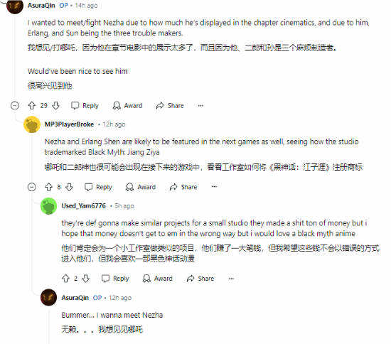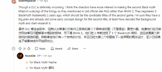 不过也有不少玩家觉得游戏在完成通关之后还是会意犹未尽,现在非常期待游戏科学可以创造多款dlc供玩家们进行体验,并且希望将动画中的哪吒也做进dlc里面,并且开启中国的其他神话供玩家们体验。