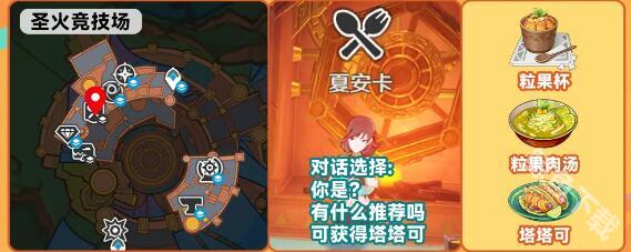 3、纳塔圣火竞技场,找到夏安卡,通过对话可以购买:粒果杯、粒果肉汤、塔塔可。