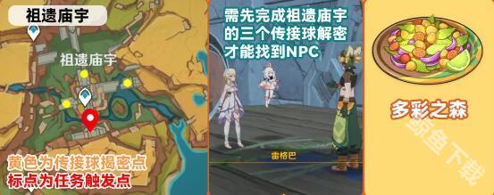 8、通过任务将夜晚放还于夜晚,可以获得多彩之森,任务地点在祖遗庙宇。