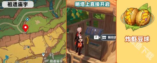 13、祖遗庙宇,一个哨塔上可以通过开启宝箱获得炸虾豆球。