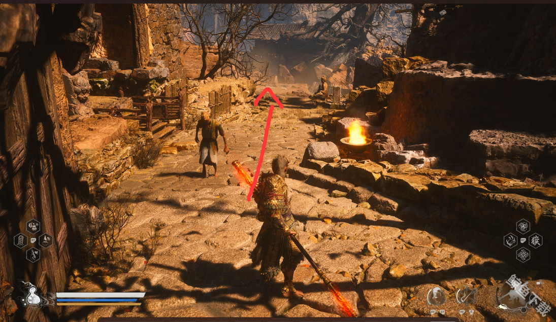 3、进村以后沿着道路一直往前走,一直走到尽头(注:如果你是第一次来回遇到敌人)