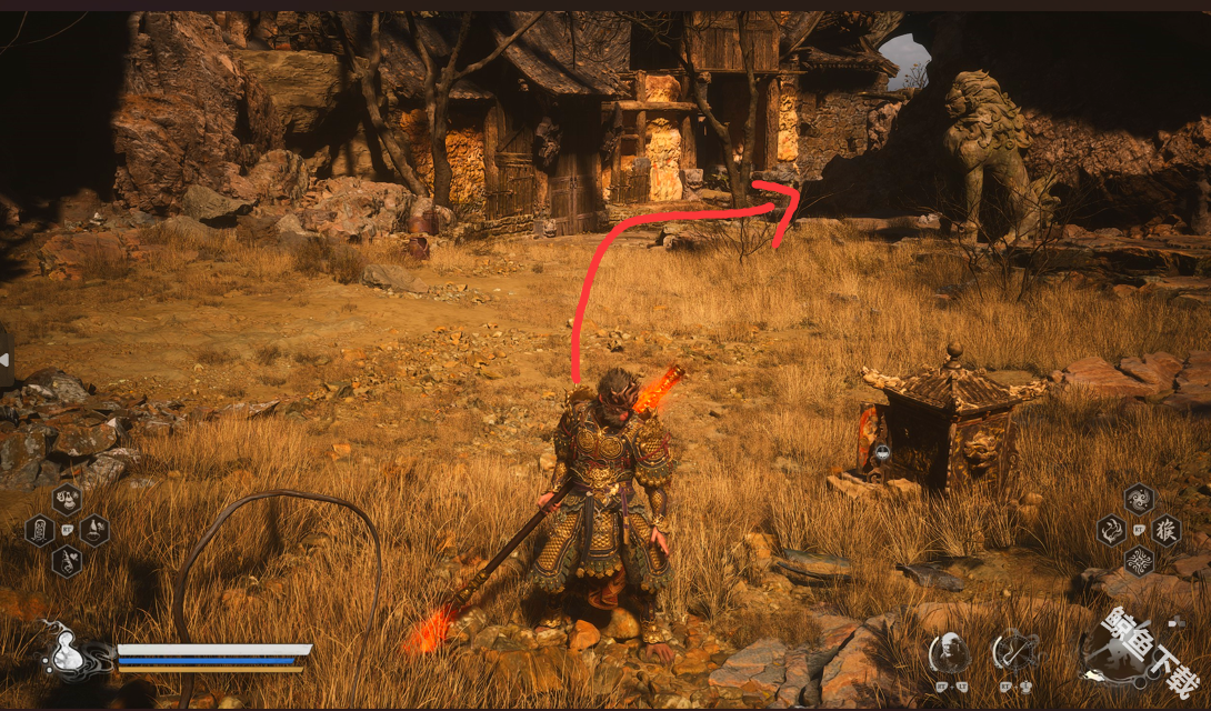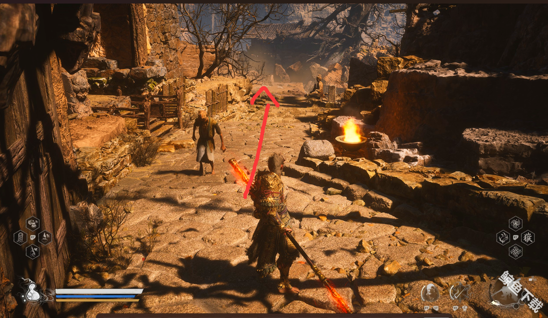3、进村以后沿着道路一直往前走,一直走到尽头(注:如果你是第一次来回遇到敌人)