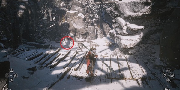 2、走到头之后,跳下木质的平台,就可以找到这个位置。