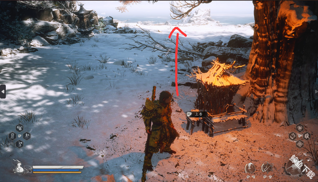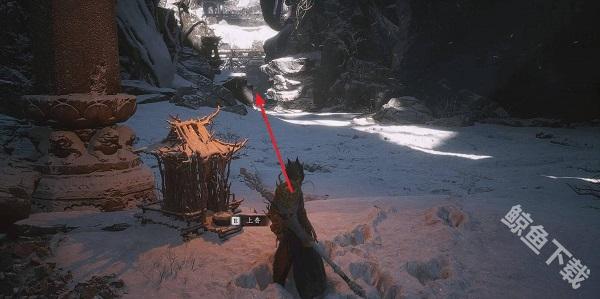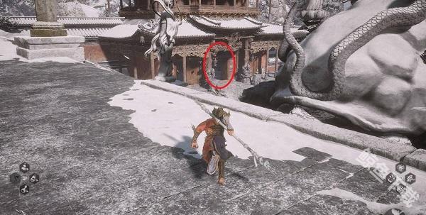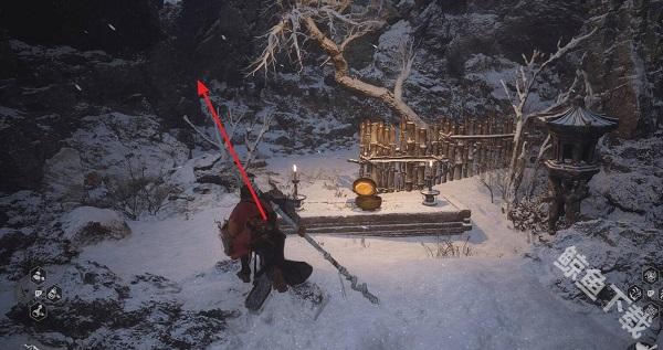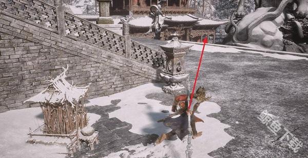1、我们先要去小雷音寺大殿的存档处,背对大殿,按照图片的指示方向走。