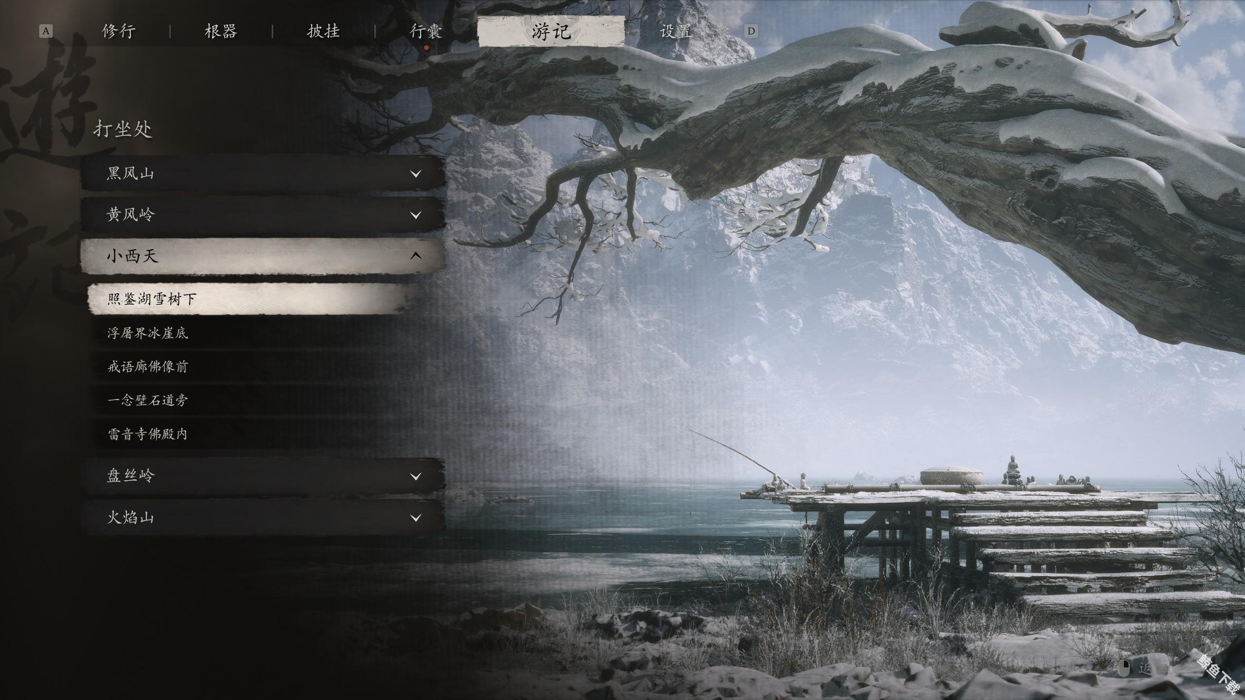 黑神话悟空小西天的打坐蒲团的位置地点在哪里?在小西天这个地区,一共有5个可以打坐蒲团的地点,分别是:照鉴湖雪树下、浮屠界冰崖底、戒语廊佛像前中、一念壁石道旁、雷音寺佛殿内,感兴趣的玩家们可以来这里查看一下攻略。
