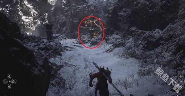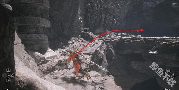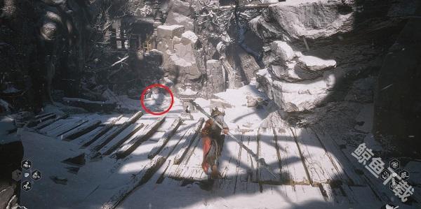 2、走到头之后,跳下木质的平台,就可以找到这个位置。